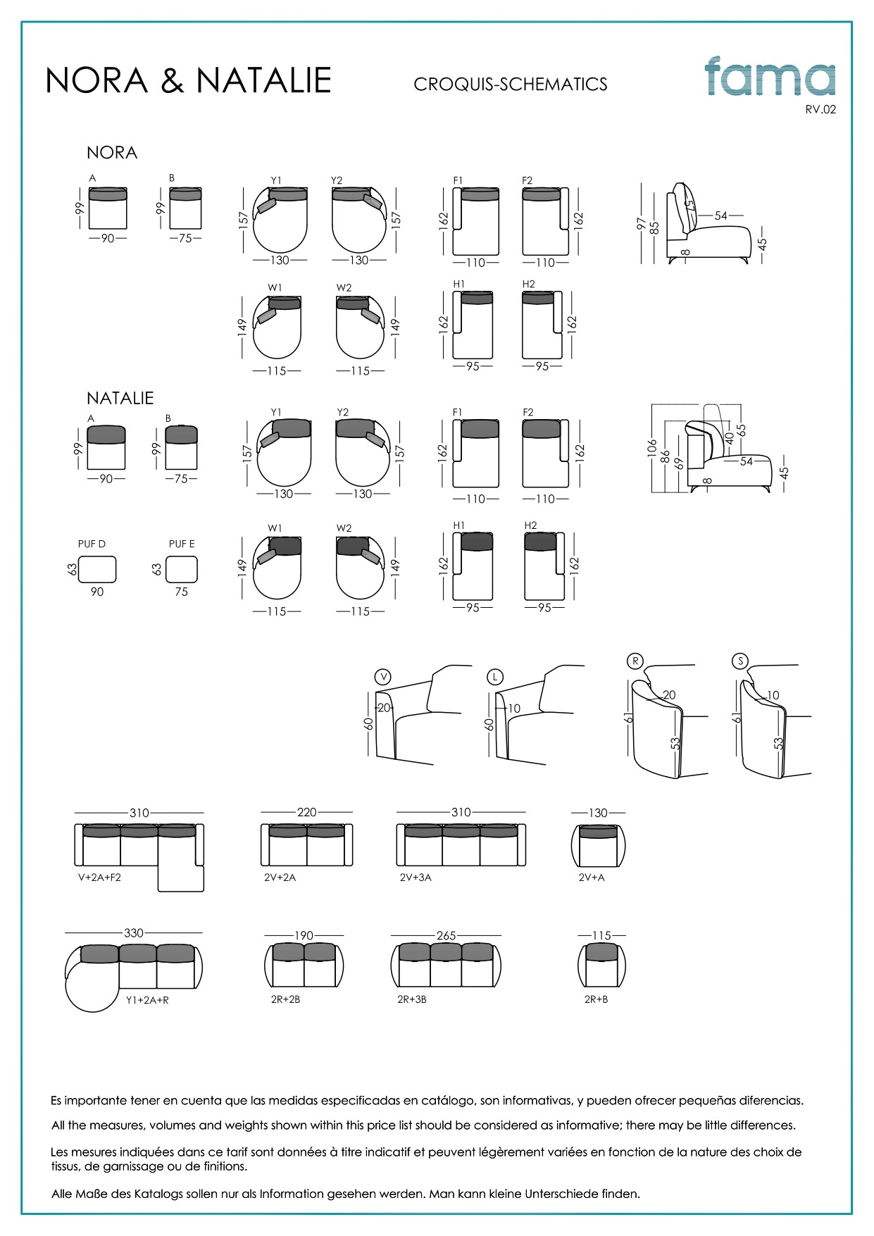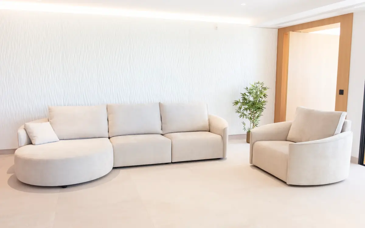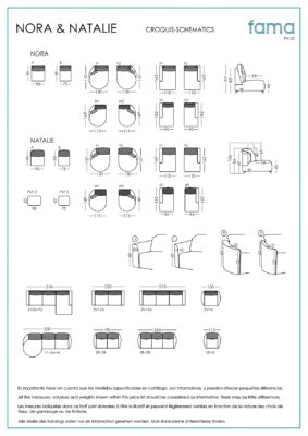 Nora is a basic modular program without mechanisms or additional functionalities. It’s a simple, understated design that surprises with its comfort and features a very affordable price, accessible to all kinds of homes and families. The seats are common to all pieces. The backrest of the Nora has a simple fiber interior. There are four types of armrest and two chaise longue designs: round and rectangular. Available in a wide selection of colours with different leg wood finishes. Click on dimensions tab to see available sizes.