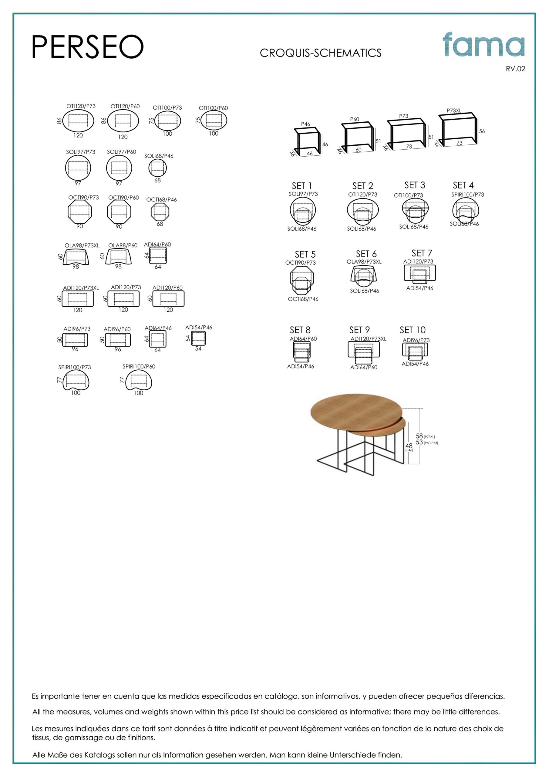 Fama Perseo is a collection of coffee tables that offers many options for the home. They are made with curved steel rod. The idea for this project came from our Klee table, which offers the possibility of fitting the table inside a central footstool or even in the sofa seat. With the Klee table we had the limitation that the sofa needed to have high legs to be able to insert it. The new Perseo steel rod legs allow the table to fit with both high and low leg models. Another idea was to make it comfortable to use it frontally and to be able to play with different heights to fit different footstools, combine them together or play with one footstool and one or two tables.