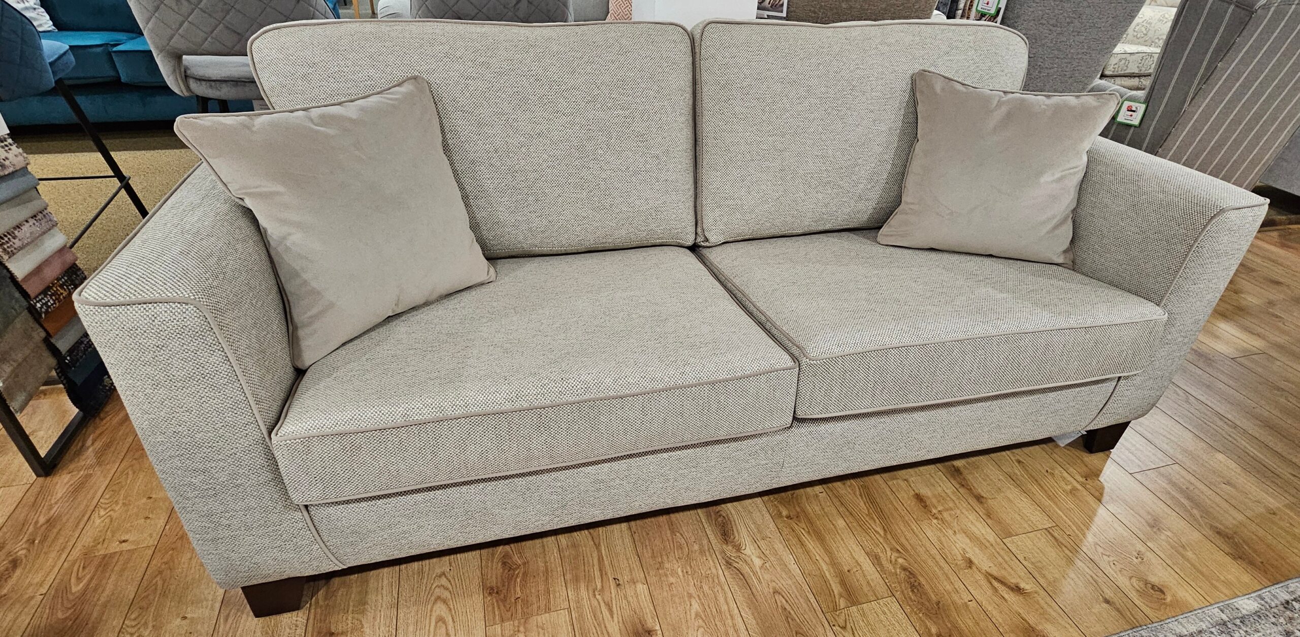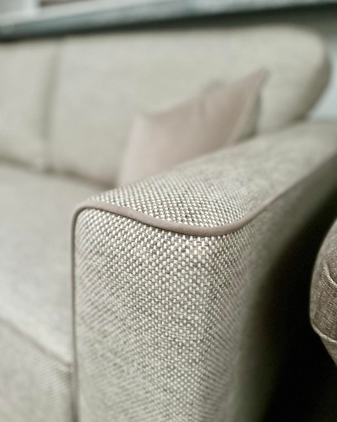 The Fila sofa is custom made in Ireland with a contemporary design which never dates. Available in both the 3 seater, 2 seater sofa and armchair options. A large range of quality plain and patterned fabrics is available to choose from. It sits on chunky wooden legs. Special sizes can also be ordered. Matching footstools are available.