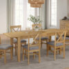 The Henley Oak dining table has a chic Scandi design featuring a real oak and oak veneer construction for a stylish and durable finish. The curved edges provide clean lines to the overall look, making it an elegant yet timeless choice for any home. Plus, size flexibility is assured with two options – 1250-1650 or 1600-2000, so you can find the perfect fit to your space. The solid centre leaf extension allows for easy configuration for larger groups, ensuring everyone can be comfortably accommodated. The leaf stores neatly under the table top. Pair it with our Eve dining chair to complete the look.