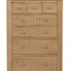 The Newhaven 6 drawer oak chest is made from beautiful oak and veneer. This collection is treated with an oil and lustre finish which brings out a contrast in the beautiful oak grain. A groove panel element is carried through all pieces and chests. It is elegantly finished with silver handles and drawers feature dovetail joints.